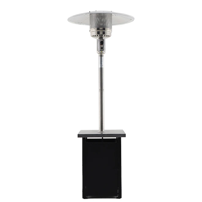 This Style Selections patio heater is made of stainless steel and rustproof aluminum. It burns at up to 48 000 BTU (propane tank sold separately). It has a steel burner and a push-button electric ignition system. Backed by a one-year limited warranty.