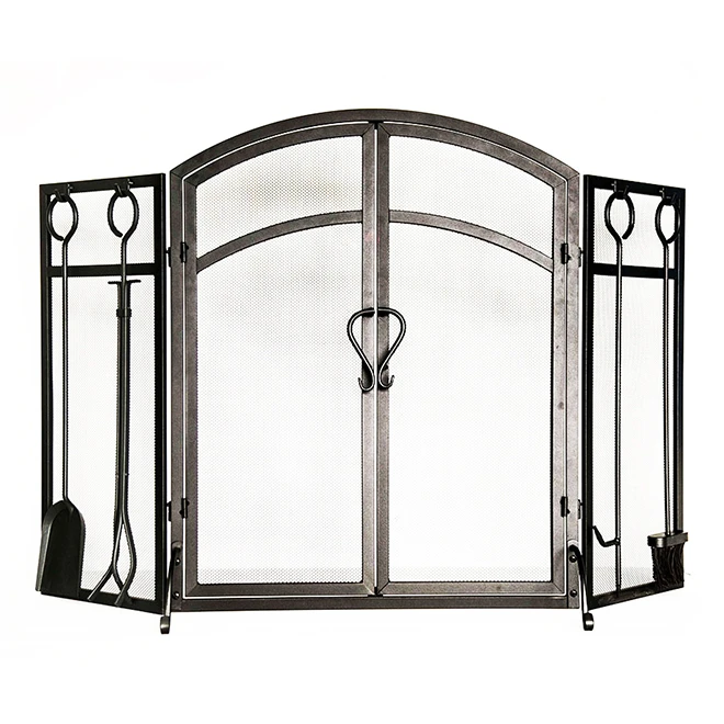Style Selections 50.3-in Eggshell Black Powder Coated Steel 3-Panel Arched Twin Fireplace Screen